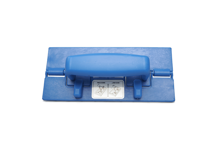 The unique design of the Fibreclean Pad Holder is utilised in two formats – this one is a hand held version and the other style which fits any of the Fibreclean handles. Ensure the frame is in a collapsed state before pressing into the cleaning pad. Push down firmly and lock the pad holder into position – it won’t come off till it is ready to replace!