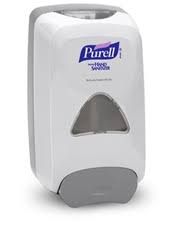 Foam hand sanitizer dispenser. ADA compliant, one-handed push operation Converts to a locking dispenser - key sold separately Compatible with PURELL® FMX-12™ 1250 mL refills