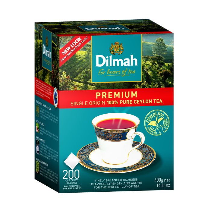 Dilmah's Premium Range of tea offers finely balanced richness, flavour, strength & aroma for the perfect tea. Tea perfect for everyday drinking from the central highlands of Sri Lanka, reputed for its brightness & medium strength. Introduces tea lovers to the romance of real Ceylon tea.
