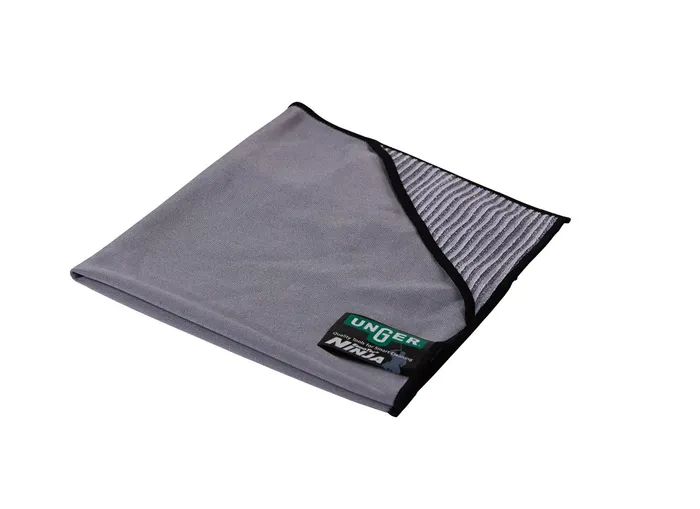 Premium Unger microfibre cloth for streak-free glass and window cleaning. Double-sided cloth, coarse for cleaning and smooth for polishing Four scrub zones for extra cleaning power Pocket corners for hanging the cloth on a pole for detailing at any height Reinforced stitching along edges ensures retention of shape. Wash Cycles: 500