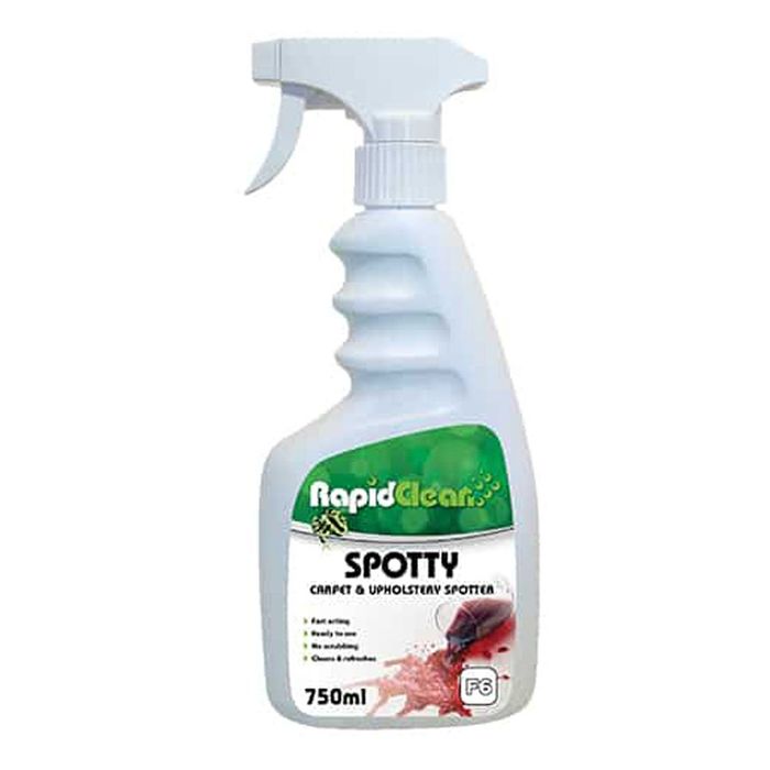 RapidClean Spotty Carpet and Upholstery Spotter is a patented stain remover that uses advanced polymer technology to encase soil on carpet fibres. It offers excellent stain and spot removal and is safe for use on most carpet, rug and upholstery fibres. Outstanding re-soiling resistance, combined with low VOCs and its non-hazardous GHS classification makes it tough on stains and gentle on fibres.