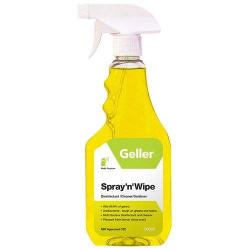 This Geller Spray 'n' Wipe Citrus Cleaner is an effective, multi-purpose cleaner with bacterial and germ killing properties. It is suitable for use in hospitality settings such as bars, restaurants and cafes to clean, refresh and sanitise tables, bar tops, counters and reception areas. Also suitable for cleaning and deodorising restrooms.