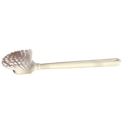 Long handled Gong brush - White - MADE IN NZ Plastic stock and handle Synthetic bristle Comes complete with screw fit handle