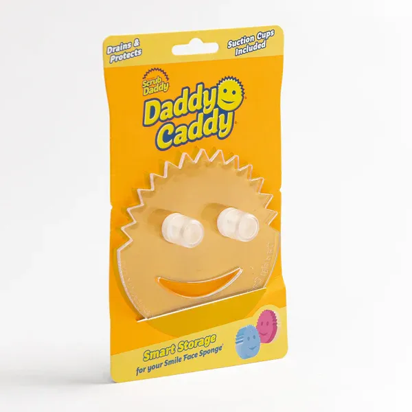 The Scrub Daddy Caddy is the sleek storage solution for your smiley face sponge. The low profile design makes Daddy Caddy the perfect addition to sinks of any size. Dual suction caps ensure a secure hold to any smooth, clean surface.