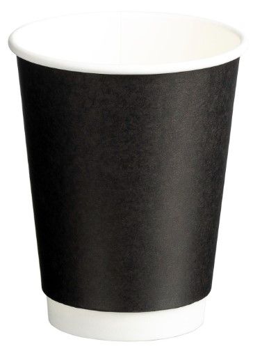 Black paper coffee cups are double-walled and PE lined. A classic design and sturdy construction disposable cup container. Provided food contamination is avoided, cups are 100% recyclable