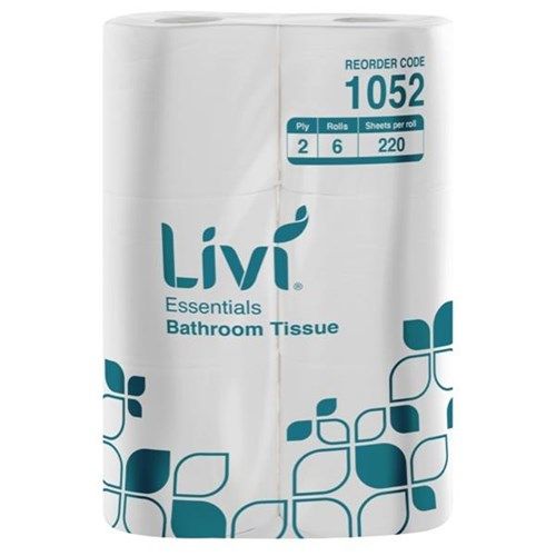 This Livi Essentials 2 Ply toilet tissue offers convenience and capacity with the 6 x 6 pack format offering balance between storage of bulky larger packs with reduced shrinkage and servicing frequency of single wrapped rolls.