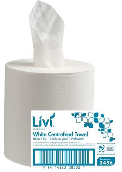 3456 Livi Essentials Centrefeed 2ply Paper Towels 180m