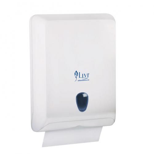 The Livi Interfold Towel Dispenser D830 measures 290mm W x 130mm D x 400mm H.